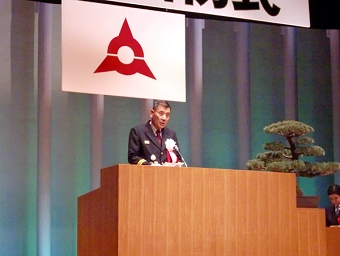 ☆1月9日(土)午前9時30分から渡辺翁記念会館及び前広場において消防署員・団員約500名が集まり平成22年宇部市消防出初式が開催されました。 |